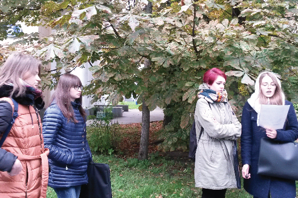 Экологическая тропа – это окружающий мир природы, который нуждается в нашем внимании и защите. Перед студентами стояла задача – собрать необходимый материал для экологических проектов, защита которых состоится в ноябре на Экологическом форуме в колледже. Во время интерактивной экскурсии участники слушали подготовленные сообщения друг друга об уникальных природных объектах МосГУ: яблоневом саде, берёзовых рощах, тополином сквере, где расположилась «зона зелёного детокса», аллее, посаженной выпускниками университета, аллее голубых елей, великолепных каштанах и редком краснолистном клёне. Во время таких прогулок звучали поэтические произведения о природе России, исполнялись песни под гитару. А в берёзовой роще кто-то вспомнил о старинной русской традиции – водить хоровод.